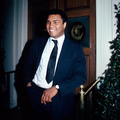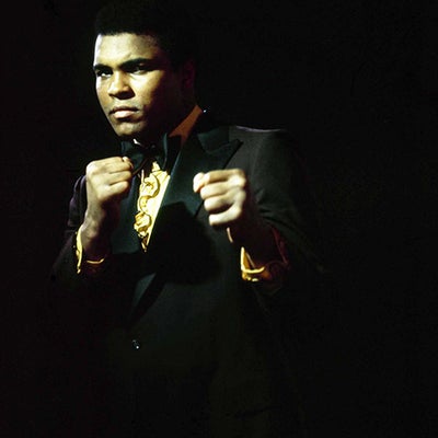 Muhammad Ali poses at a ceremony honoring him with a star on the Hollywood Walk of Fame in Hollywood.