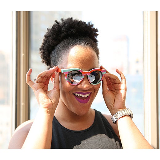 ESSENCE Beauty and Style Director Pamela Edwards-Christiani looks summer cool with mirrored Westward Leaning Flower 8 sunglasses ($225, at shopbop.com) and Urban Decay Vice Lipstick in ‘Tilt’ ($17, at sephora.com).