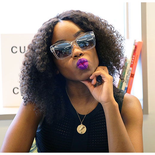 Assistant Social Media Editor, Taylor Lewis is #SummerGoals with Smashbox ‘Always on Matte’ Liquid Lipstick in “Some Nerve” ($24, at sephora.com) purple lips and vibrant ‘Eyes of Gina’ sunnies from Swatch ($85, at swatch.com)