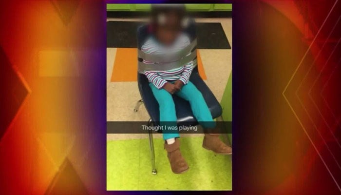 A disturbing photo of a 4-year old girl in Missouri appears to show her duct taped to a chair at her daycare center, setting off a call from her parents for a thorough investigation.
