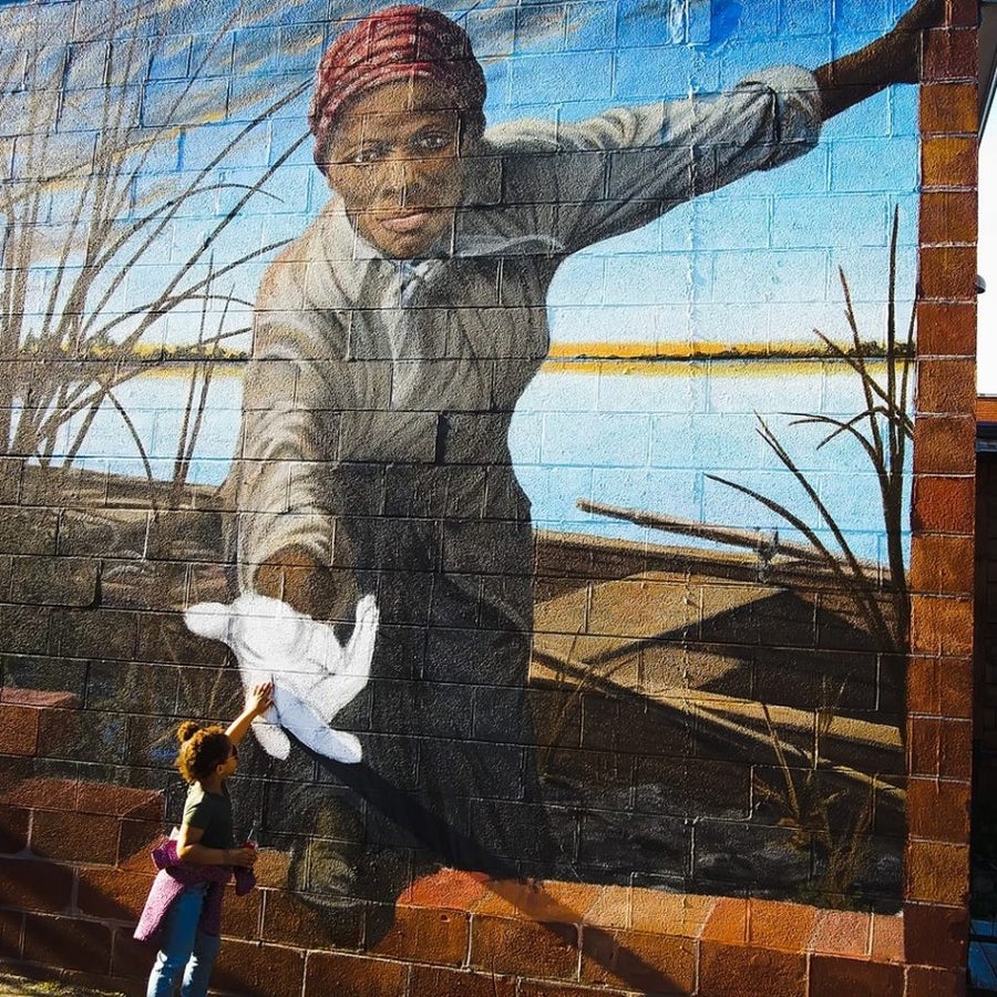 According to Yahoo Lifestyle Auriah “Lovie” Duncan was walking with her grandmothers, Tracy and Tammy Lynndee, when they came upon the mural of Harriet Tubman in Cambridge, Maryland. The piece that now adorns the side of the Harriet Tubman Museum & Educational Center, was commissioned by Dorchester Center for the Arts for the 50th Anniversary of the Maryland State Arts Council and painted by local muralist Michael Rosato.