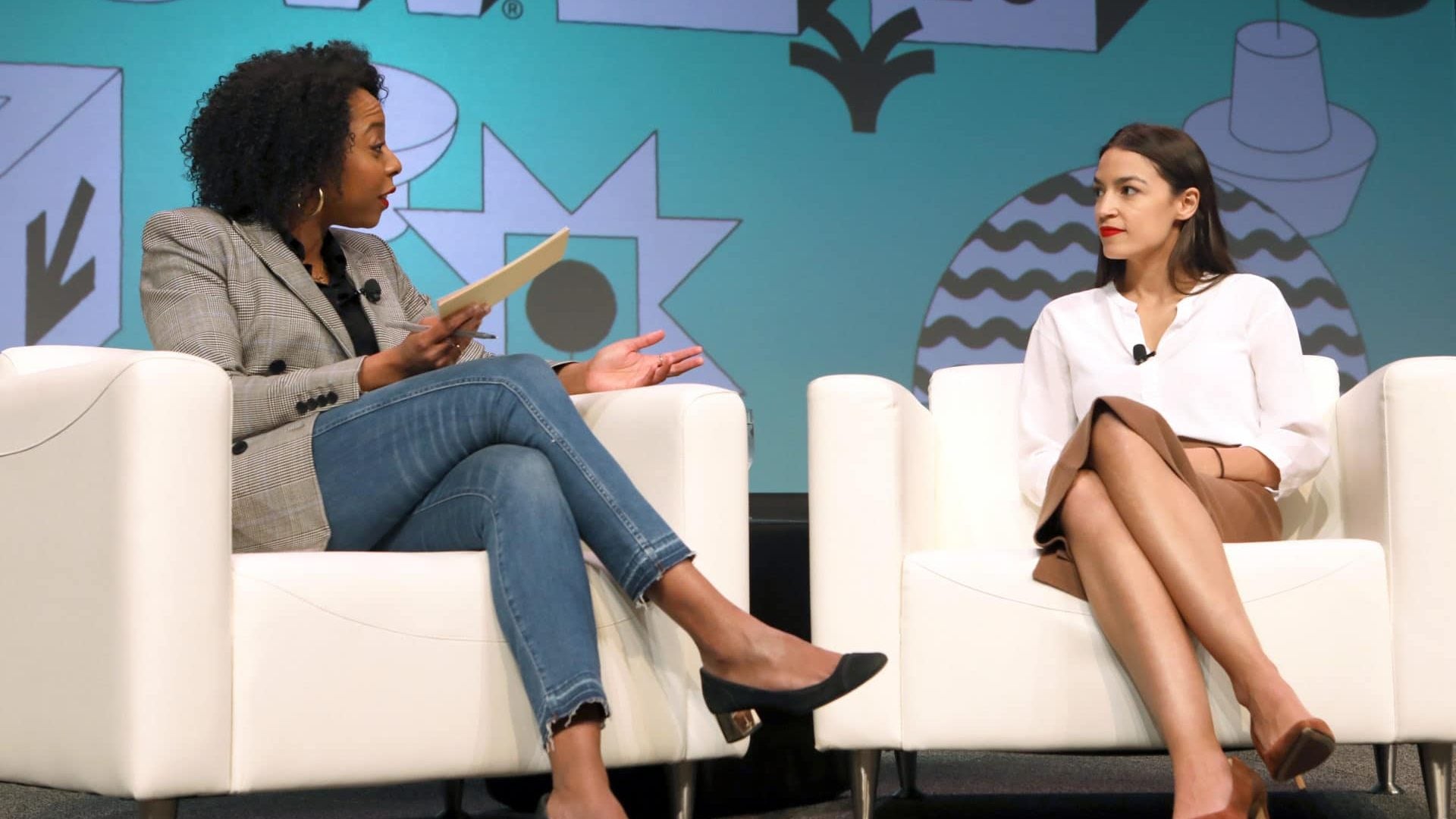 AUSTIN, TX – MARCH 09: (L-R) Briahna Gray and Alexandria Ocasio-Cortez speak onstage at Featured Session: Alexandria Ocasio-Cortez and the New Left during the 2019 SXSW Conference and Festivals at Austin Convention Center on March 9, 2019 in Austin, Texas. (Photo by Samantha Burkardt/Getty Images for SXSW)