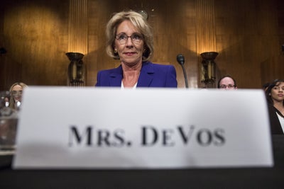 That, in addition to questionable remarks made during the hearings this week, which included her alarming advocacy for guns in school buildings (to support the controversial stance, she suggested that at least one school in Wyoming would need guns to protect against grizzly bears) and her inability to identify the difference between “growth” and “proficiency” regarding student performance.