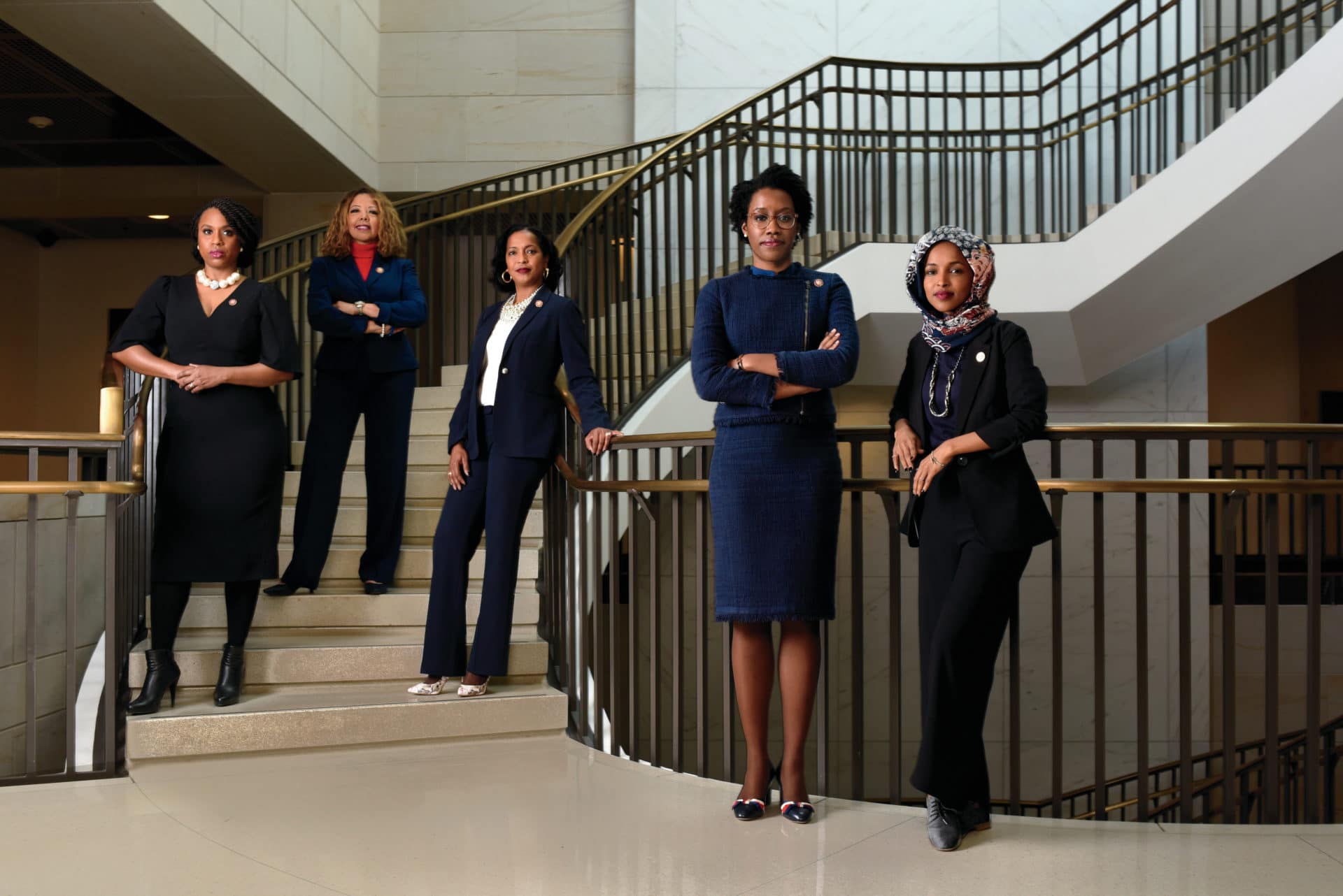 Representatives Jahana Hayes of Connecticut, Lucy McBath of Georgia, Ilhan Omar of Minnesota, Pressley of Massachusetts and Lauren Underwood of Illinois were sworn into the 116th Congress on January 3, a day filled with pomp and circumstance, official class photos and plenty of jubilant selfies. Ever since they won their races, it’s been a veritable whirlwind for the women: going to orientation in the nation’s capital and on Harvard’s campus, attending a retreat in Virginia, choosing Hill offices in a college dorm–like lottery, setting up their new quarters, hiring staff, forging connections and learning all the nuances of representation. The lawmakers are among the so-called blue wave of Democrats elected during a record voter turnout in the November 2018 midterms. The group is also part of a Black wave—sisters who defied the odds to run for office, ultimately disrupting the establishment with their victories.