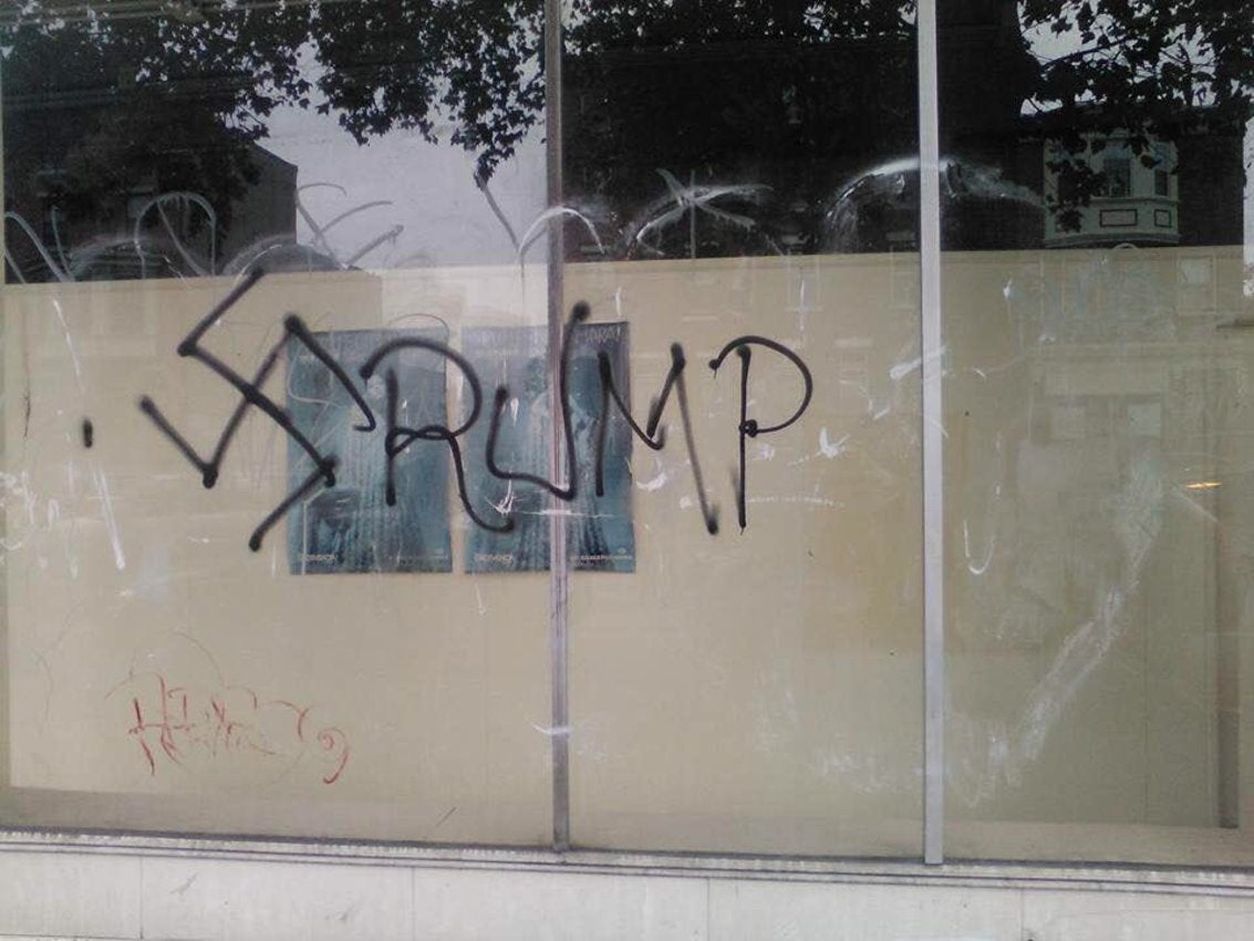 Residents in South Philly woke up Wednesday to swastikas and racist graffiti referencing Donald Trump spray-painted on a storefront.