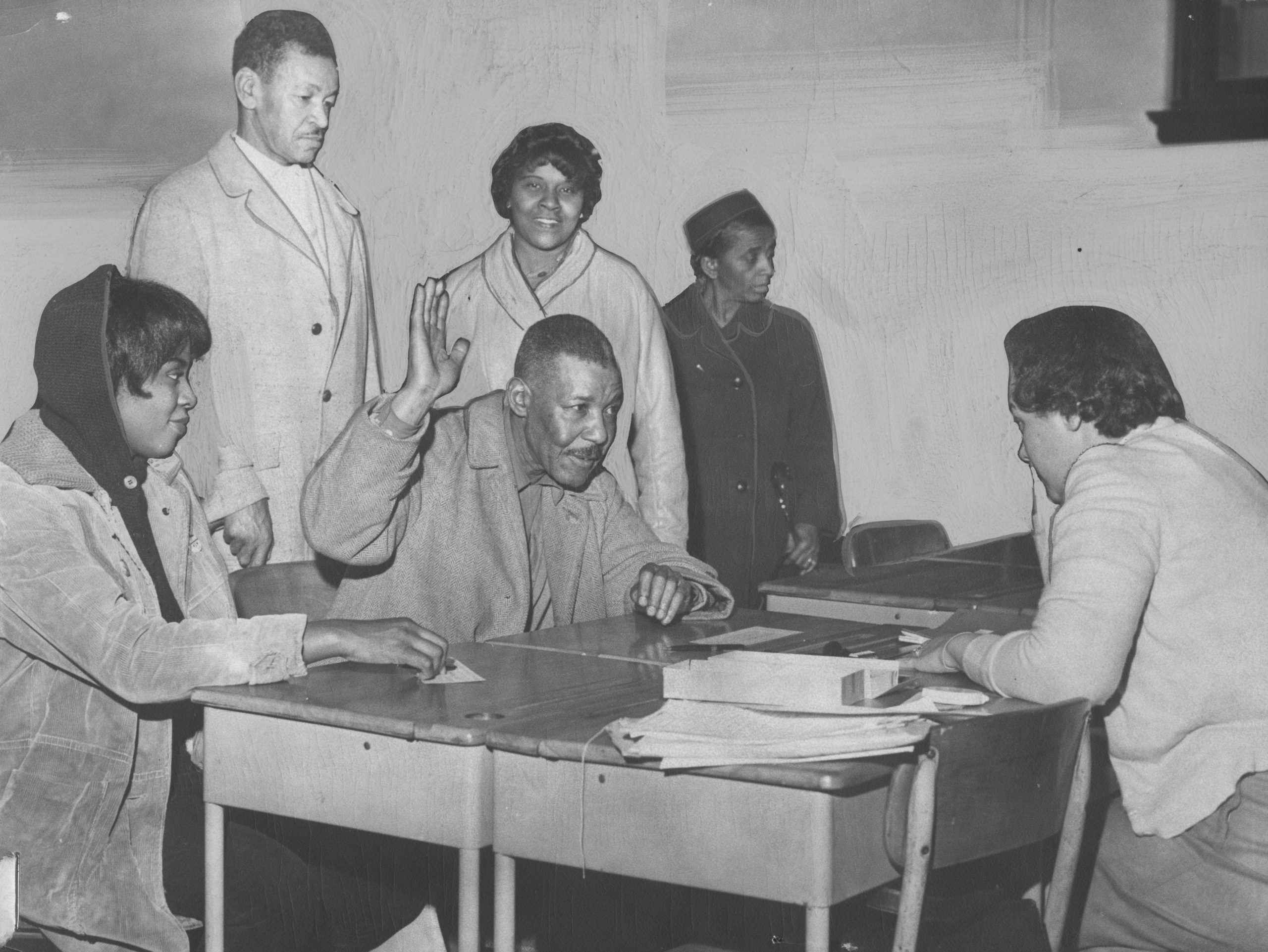 African-American men and women, registering to vote before the deadline, 1958