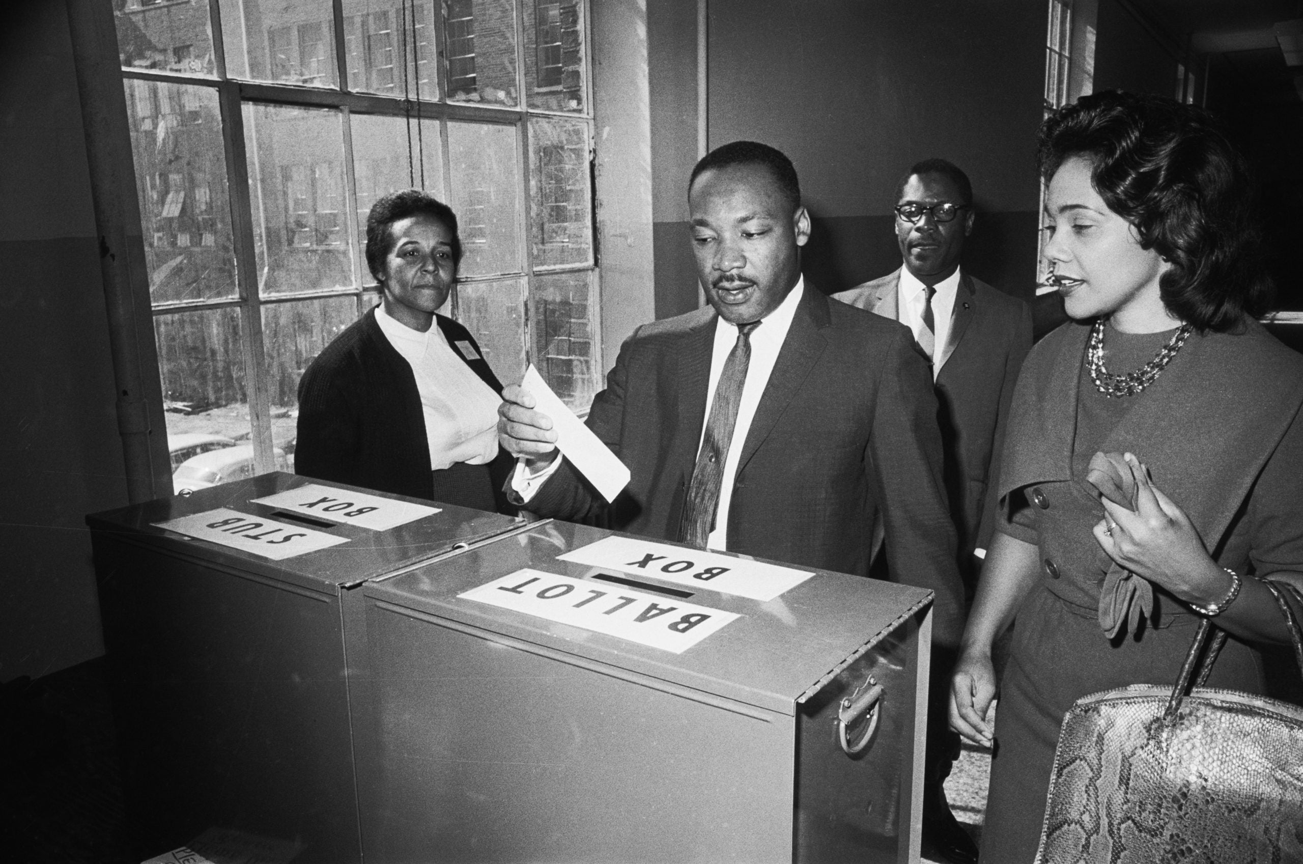 Dr. Martin Luther King Jr votes as his wife, Coretta Scott King, waits her turn. Atlanta, Georgia 1964