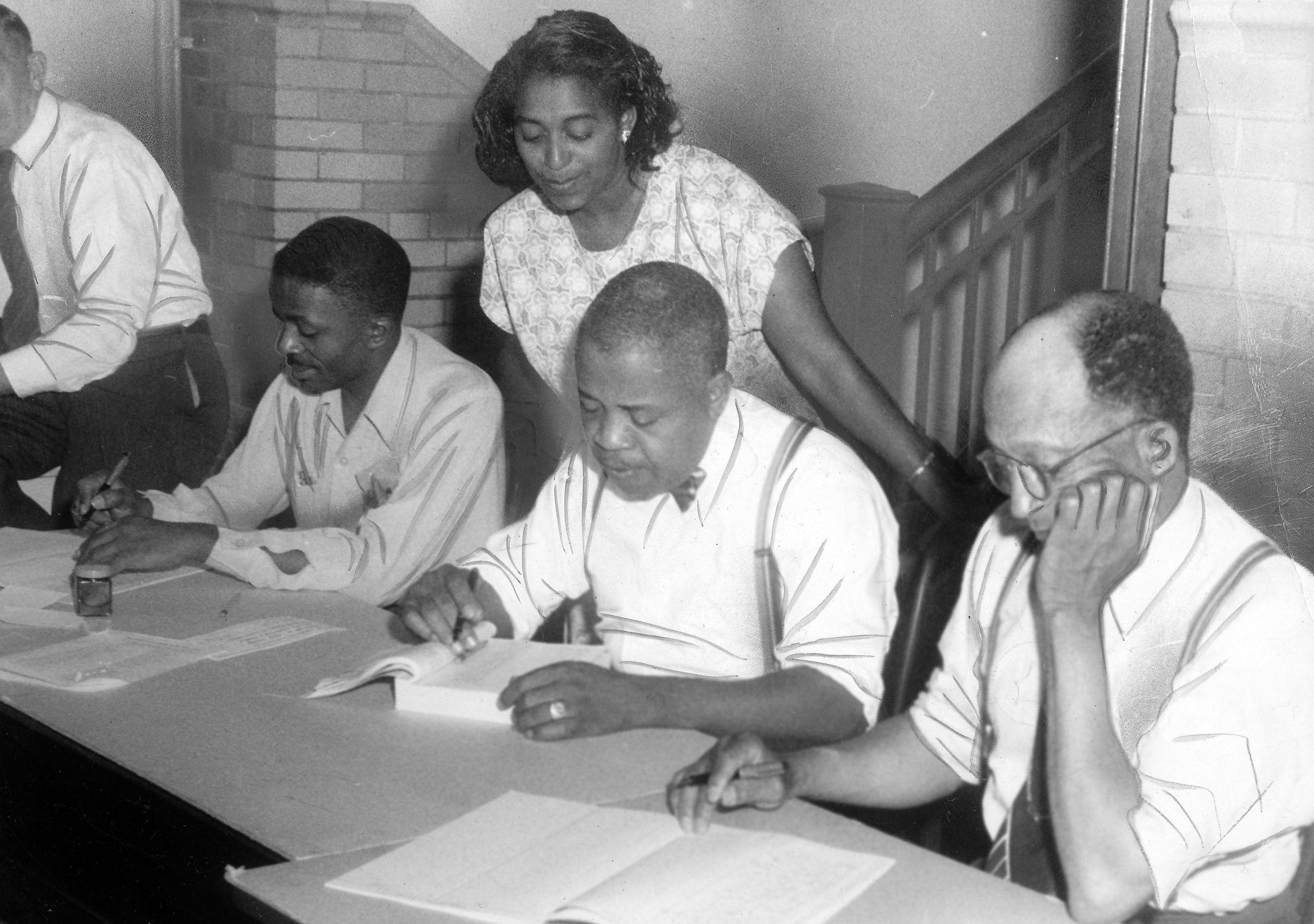 African-American officials counting vote ballots during an election, 1949