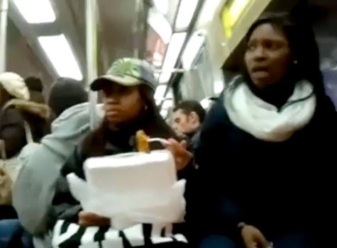 A new viral video depicting a skirmish between two Black teen girls and a White woman has surfaced on the net. The clip, which was filmed in Brooklyn, shows the 30-something woman harassing the young girls for eating on the train; without any obvious provocation, she calls them “animals” and “idiots.” The teens return fire with a slew of insults about her weight and by calling her a few different kinds of b*tches. The White woman continues with her harassment, telling the girls they will end up in jail and even goes so far as to swell up on one of the girls as she prepared to get off of the train. As the subway jerks, the girl accidentally bumps into the woman, who then shoves her back. Unsurprisingly, both girls then proceed to fight with the passenger until they are broken up by a male bystander.