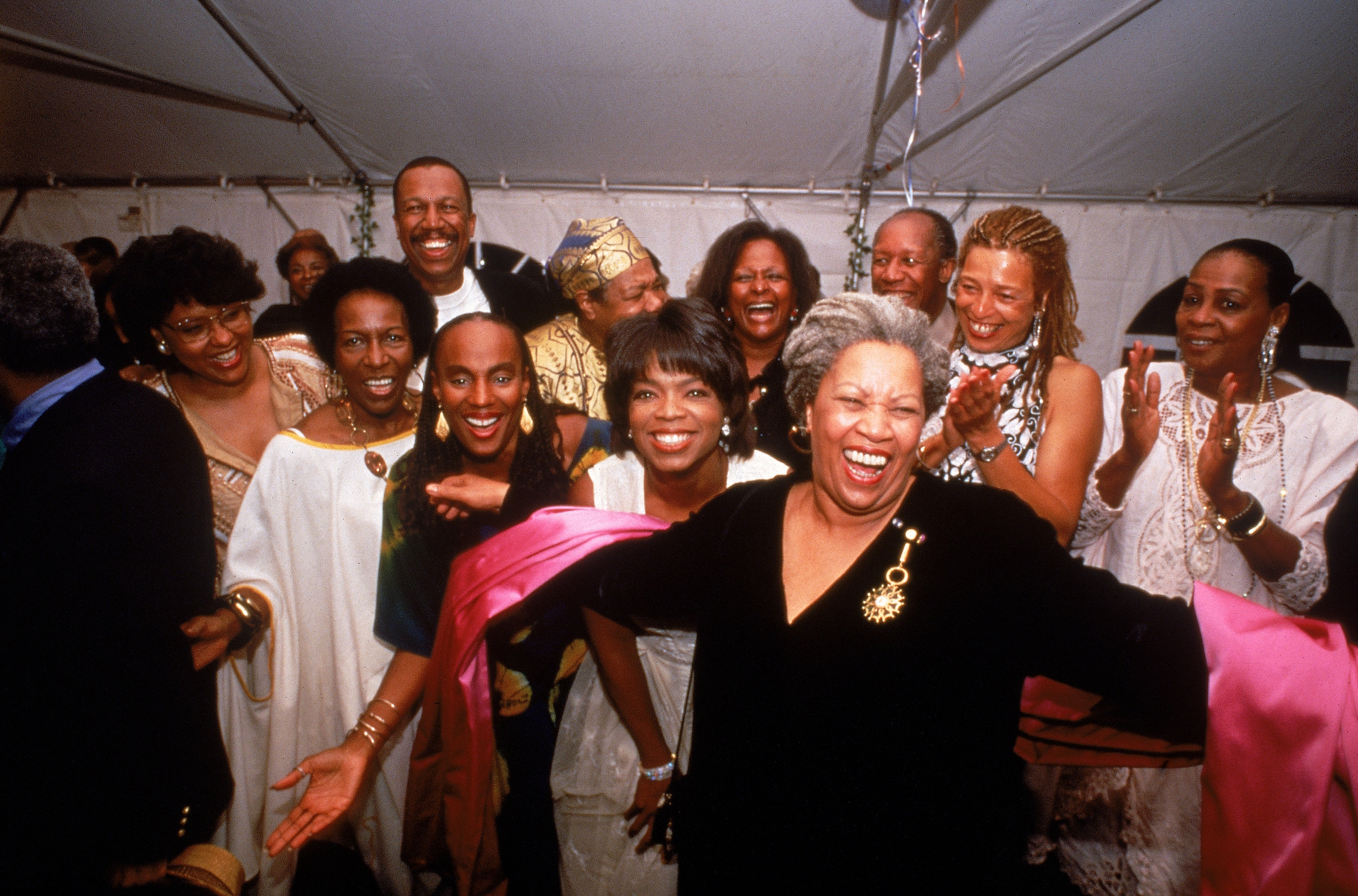 accepting the applause of partygoers Susan Taylor, Rita Dove, Oprah Winfrey, Angela Davis, Maya Angelou & others; Winston-Salem.