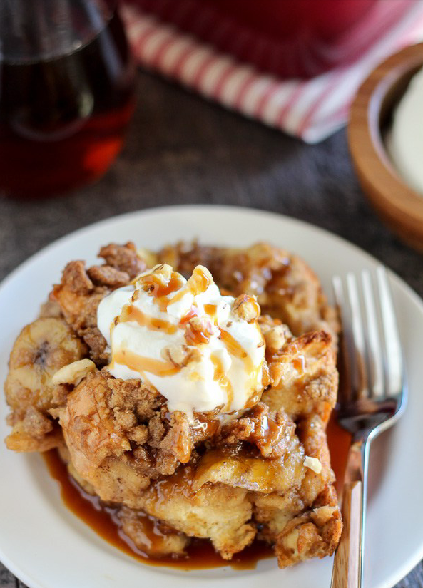 There’s bananas. There’s a salted caramel sauce. There’s a brown sugar crumble topping. And it’s in casseole form. This recipe has us saying yes, yes, yes!