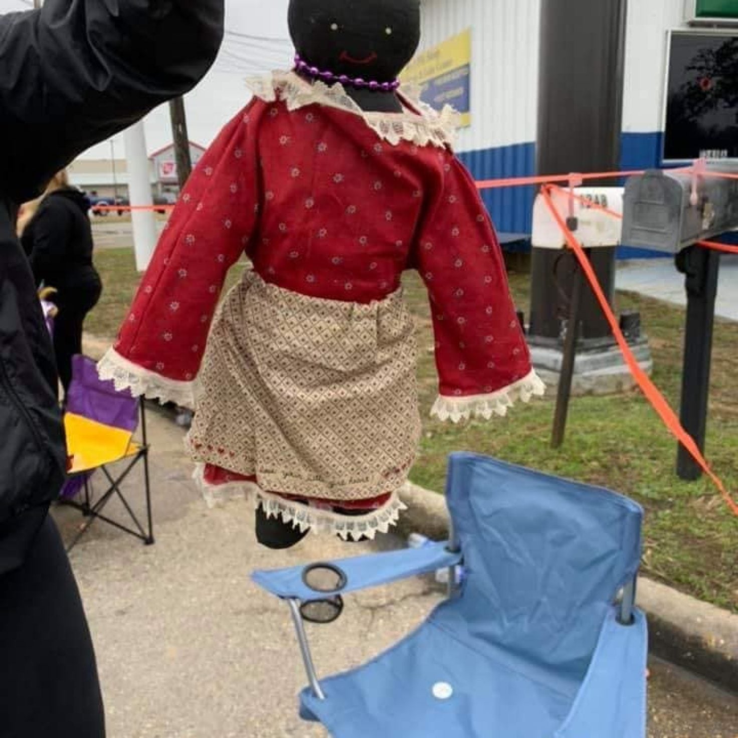 Black Doll Hanging From Noose Made Of Beads Given To Child During Mardi Gras Parade